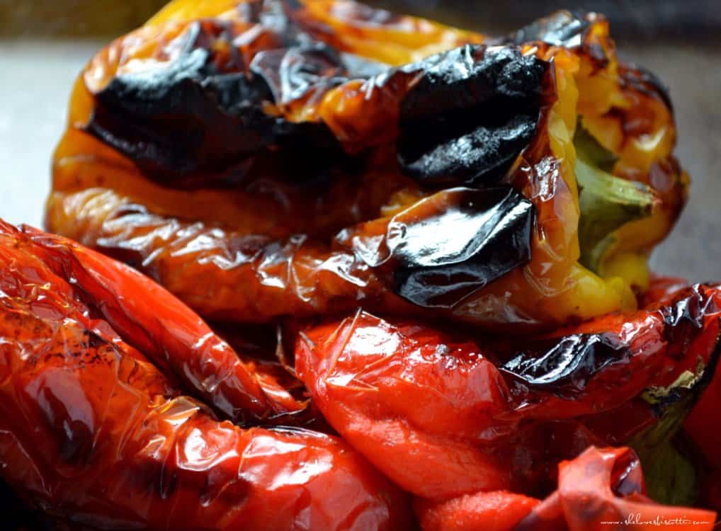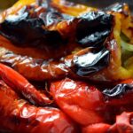 • Paprika im Ganzen, Knoblauch in Schale, in Helfe durchgeschnitten bei 220 Grad 20 Min im Ofen backen